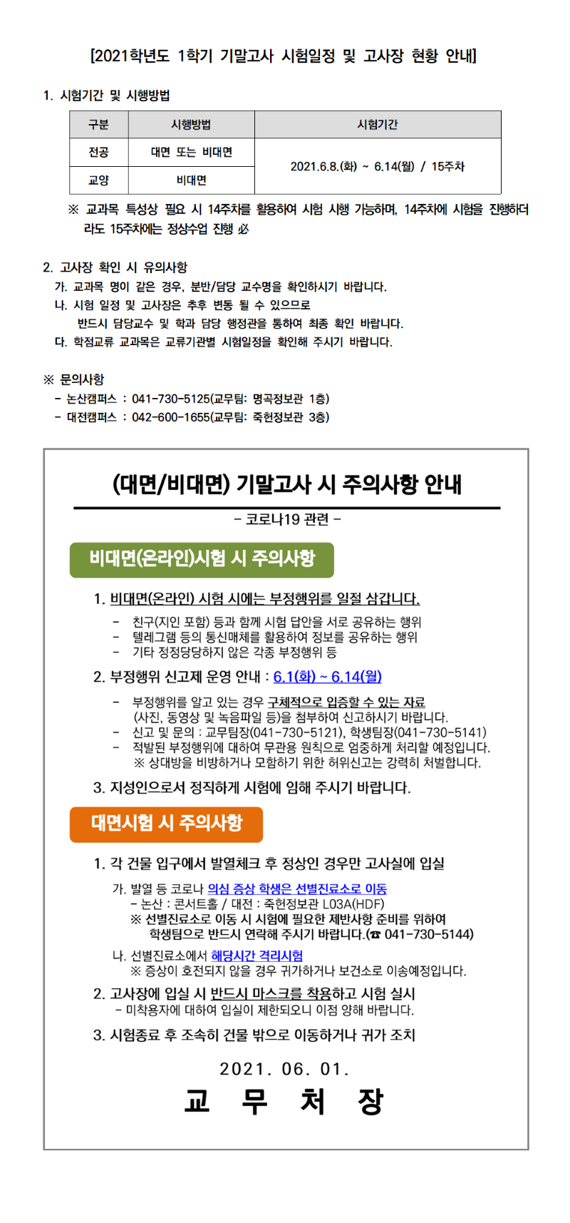 | 제목 | 2021학년도 1학기 기말고사 시험 일정 안내(2차) | ||||